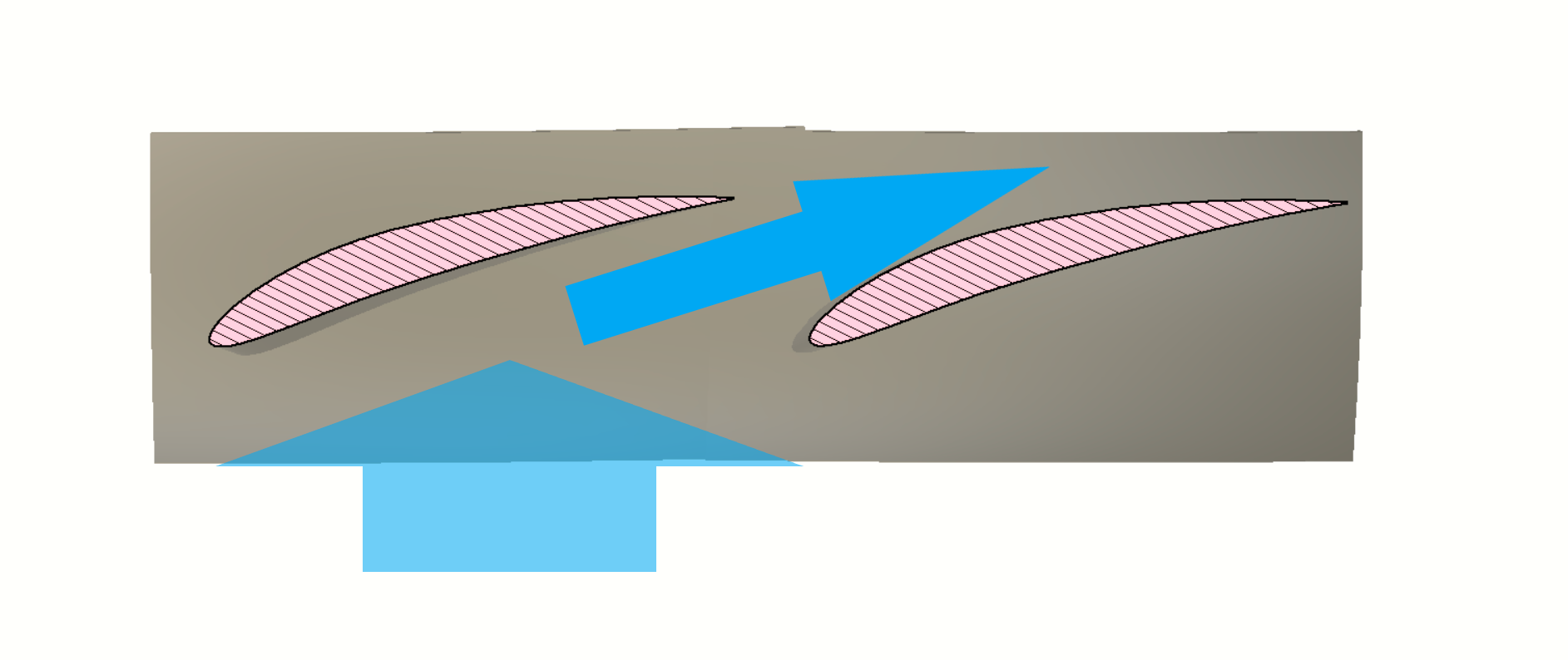 Sketch: Mass flow acceleration through blade nozzle. |